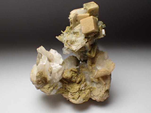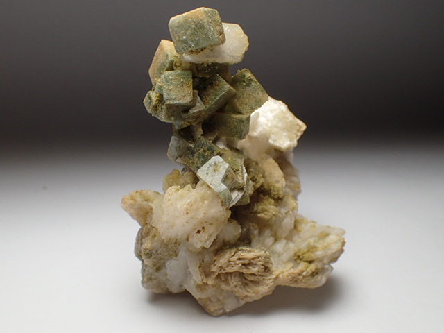 クリアな魚眼石に緑泥石が入っています。輝沸石を伴ったアーティスティックな形状の魚眼石です。