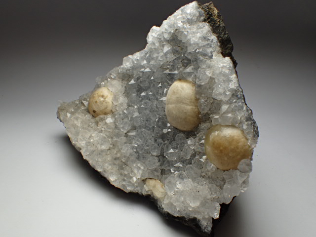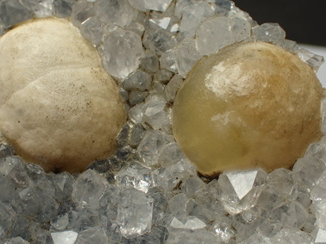水晶にのった球状フローライトです。