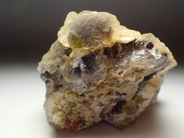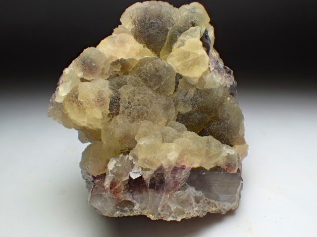 アメシストを覆った透明感のある黄色の珍しい球状のフローライトです。