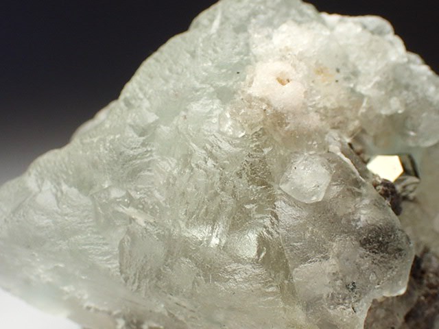 淡いグリーンー色の骸晶のきれいなフローライトです。パイライトを伴っています。