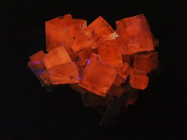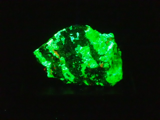 蛍光鉱物とは紫外線ライト、エックス線、電子ビームなどをあてると蛍光を発する鉱物のことを言います。このうちエックス線や高いエネルギー電子エミッターなどは私たちには扱うことができませんが、紫外線ライトにより蛍光を調べることができます。 紫外線とは可視光線のうち紫より波長の短い光(電磁波)で目には見えません。この紫外線のうち周波数が400-360(nm)帯の紫外線を長波300-200(nm)帯の紫外線を短波とよび、この周波数帯の紫外線をあてることにより反応して蛍光する鉱物が多くあります。電気屋さんで売られているブラックライトと呼ばれる蛍光灯は長波帯をカバーしています。現在約3600種以上の鉱物が発見されていますが、そのうち500種類の鉱物が何かの方法で目に見える蛍光をします。 電磁波をあてることによる発光をルミネセンスと呼びますが、熱や衝撃を与えることにより発光する場合もあり、熱ルミネセンスや摩擦ルミネセンスと呼んでいます。 蛍光は蛍光に関与する電子イオンによるものですが、純粋の鉱物はほとんど蛍光しません。蛍光はこれらの鉱物に不純物が混ざることによって引き起こされます。また、純粋な鉱物でも蛍光するものが少しあります。灰重石やパウエライト、リン灰ウラン石がそれですが、ベニト石、白鉛鉱、硫酸鉛鉱などもそうではないかと言われています。 蛍光を利用して鉱脈の発見や不純物の種類を調べることができます。たとえば、灰重石は通常シアン色に強い蛍光をしますがモリブデンを含みますますと白又は黄色になります。これはタングステンの取り出しを厄介にします。また。夜や暗い洞窟などでは鉱脈を見つけるのに使用できます。 カルサイト(方解石)やフローライト(蛍石)は一般的な蛍光鉱物です。カルサイトは赤みを帯びた色に、フローライトは青白く蛍光します。マンガンを含んだマンガノカルサイトは長波ではピンク色に短波ではより赤く強烈な蛍光を示します。また、カナダのケベックで発見されたウエルネル石は強烈な黄色にハックマン石はオレンジ色に、ニュージャージー、フランクリンの珪亜鉛鉱は鮮やかな緑色に強い蛍光を示し、とても印象的です。 「世界の蛍光鉱物首都」と呼ばれる場所があります。それは、ニュージャージーのフランクリンで近くのオグデンズバーグを含めると260種類の鉱物が発見されこのうち56種類が蛍光鉱物です。こんなに多くの蛍光鉱物は発見された地域は他にはありません。フランクリンではひとつの鉱物標本から5つの蛍光鉱物が発見されています。フランクリンとオグデンズバーグの鉱山はすべて閉山しましたが、オグデンズバーグのスターリング鉱山は蛍光鉱物美術館として見学することができます。坑内の壁はブラックライトでライトアップされ極色彩で幻想的なタイムトンネルのようだそうです。 |