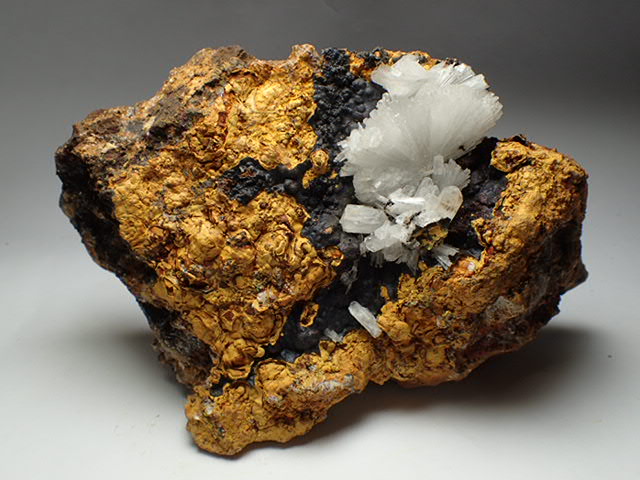 褐鉄鉱に放射状に成長したきれいな異極鉱がついています。大きく見ごたえのある美しいコレクションです。