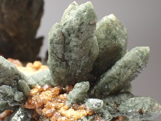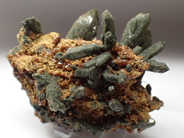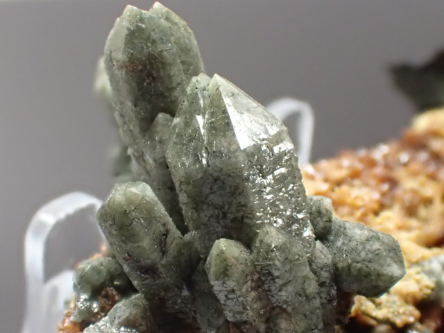 ヘデンベルグ石が入って深い緑色に色づくロシアの緑水晶です。褐色のアンドラダイトを伴っています。手に入れ難い美しい緑水晶です。