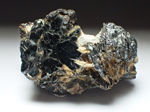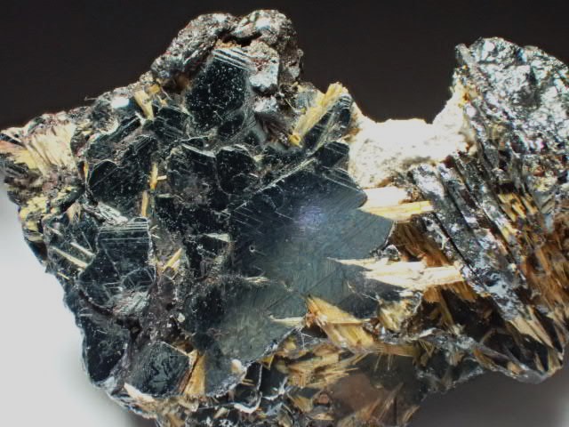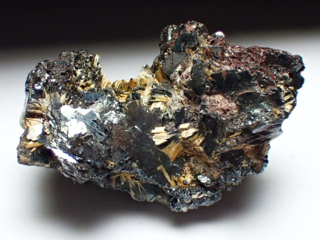光輝の強いヘマタイトにたくさんのきれいなルチルがついています。